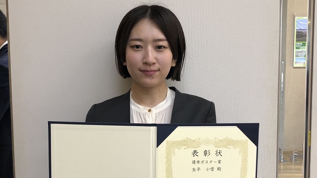 【農学研究科農芸化学専攻】博士前期課程2年 生平小雪さんが日本アミノ酸学会第17回学術大会で学生優秀発表賞を受賞しました