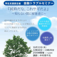 「金融トラブルに関するセミナーを10/12 (木) にオンラインで緊急開催します。」【事前予約不要】
