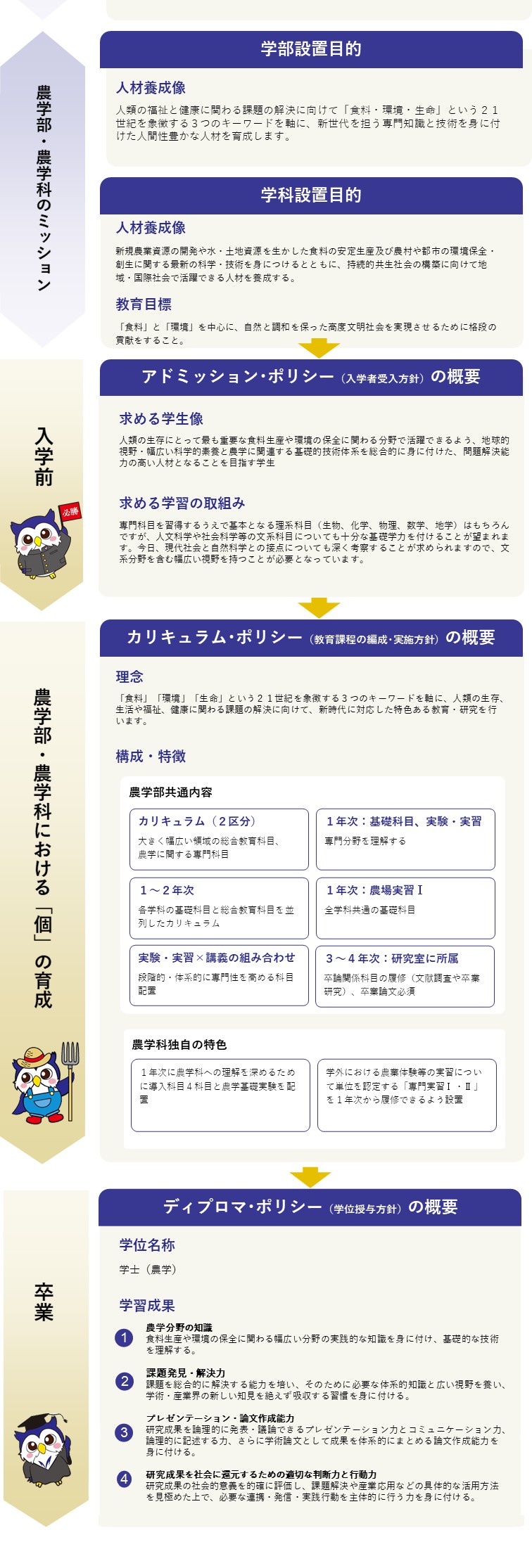 農学部農学科3つのポリシーに基づく学びのイメージ