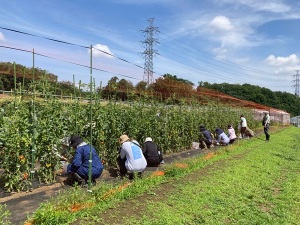 本講座では、作物の栽培経験がほとんどない方にも農業をより身近に感じてもらうとともに、自分で作った野菜の簡単な加工を楽しんでもらうために、野菜栽培やその加工を実践することで基礎的な栽培・加工技術を学びます。講座は黒川農場の圃場での野菜づくりの実習や加工室での食品加工のほかに、簡単な栽培や野菜に関する基礎知識の講義も行います。実習では4月から7月までの4か月間で、各自が9㎡程度の区画を持ち、4種類の野菜を育て、加工品を作ります。これまで、ほとんど野菜栽培の経験がない方や簡単な食品加工に興味がある方を対象とした講座です。