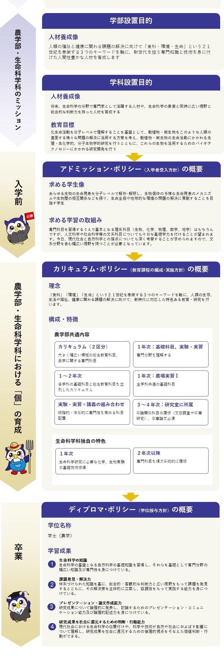 農学部生命科学科3つのポリシーに基づく学びのイメージ
