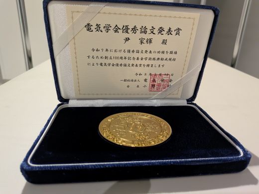 先端数理研究科ネットワークデザイン専攻博士後期課程1年の尹家輝さん(福山良和研究室)が令和8年3月12日に東北学院大学五橋キャンパスで行われた電気学会 全国大会において優秀論文発表賞を受賞しました。