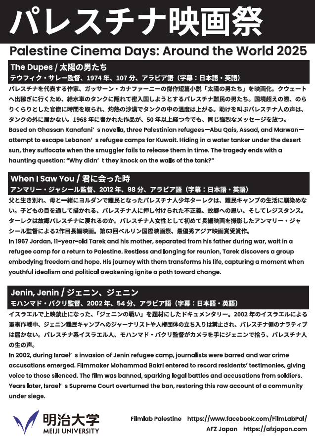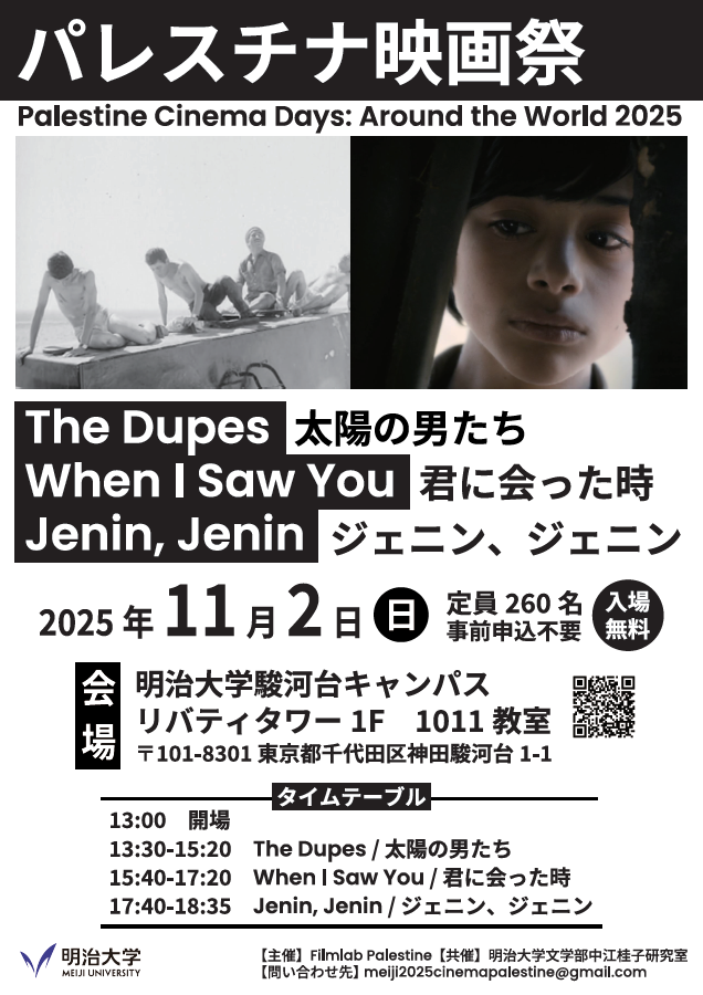 【主催】Filmlab Palestine 【共催】明治大学 文学部 中江桂子研究室