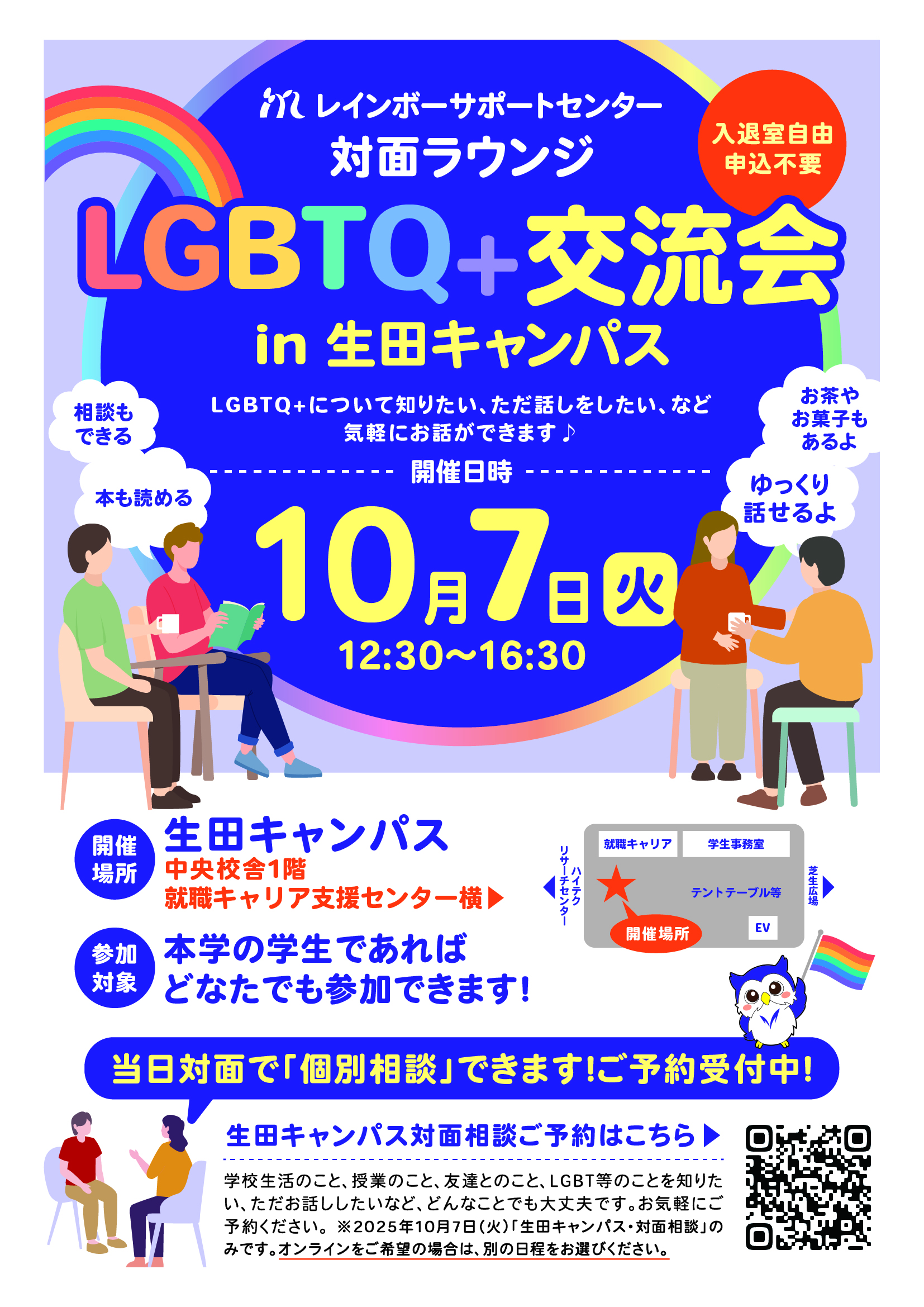 【生田キャンパス「LGBTQ+交流会」(対面ラウンジ)・個別相談】