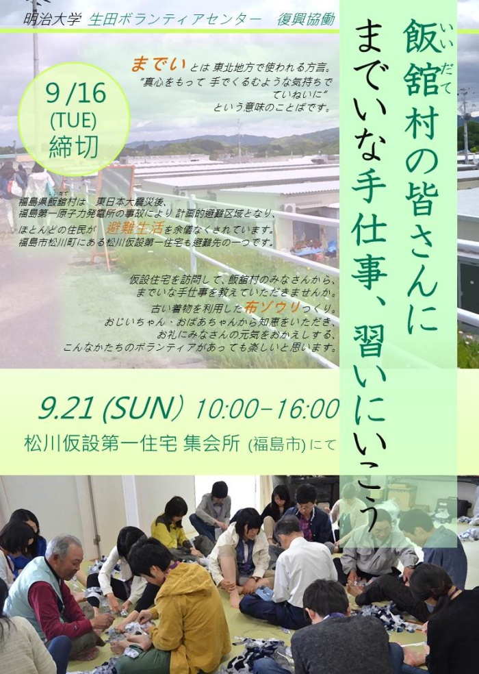 【生田VC】復興2014秋「までいな手仕事、習いに行こう」参加者募集中