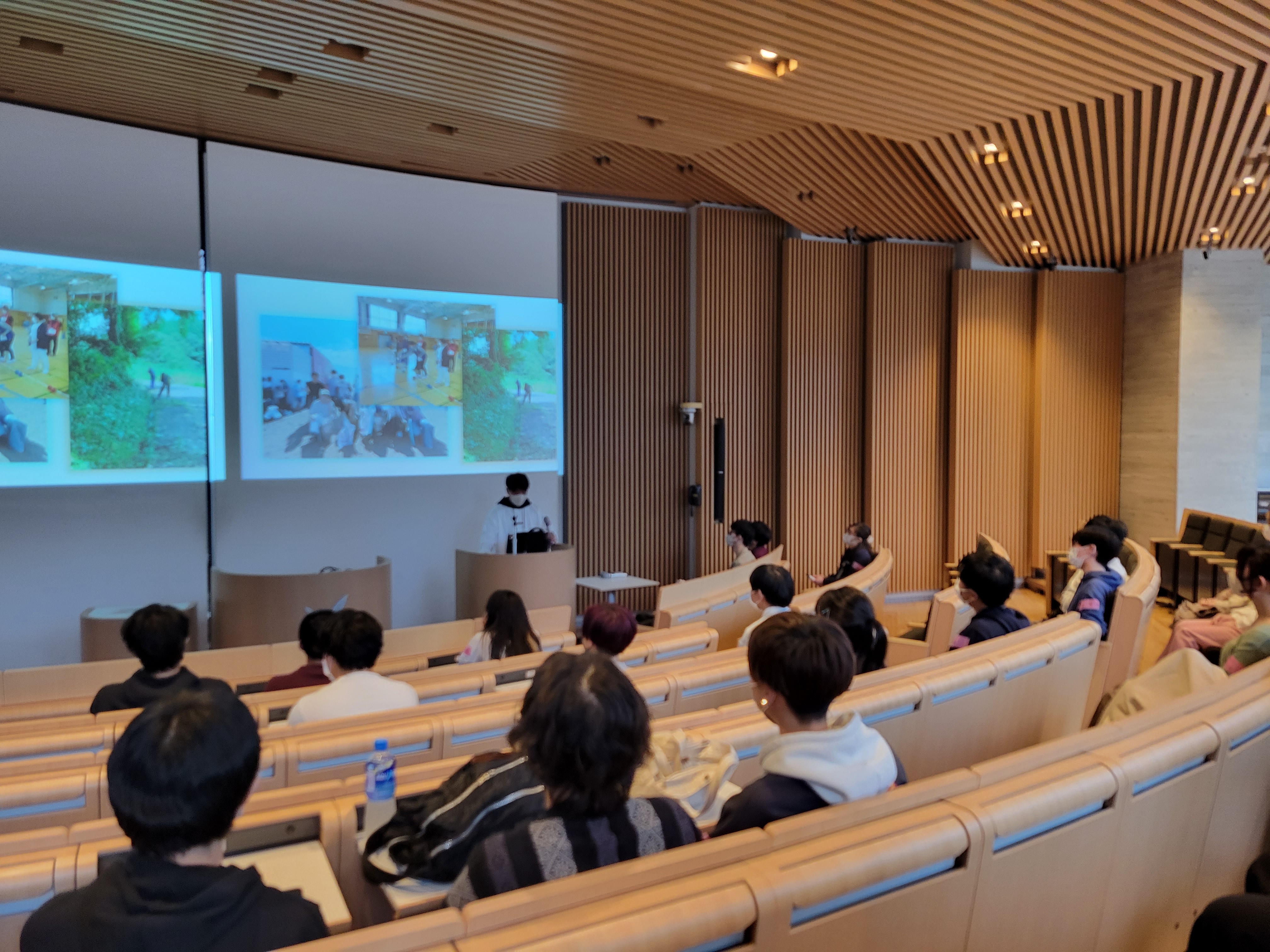 昨年度は報告会だけとなりましたが、今年は3年ぶりにコロナ前の開催時のように学生たちが事前に打合せを重ね、2部構成にして作り上げました。
