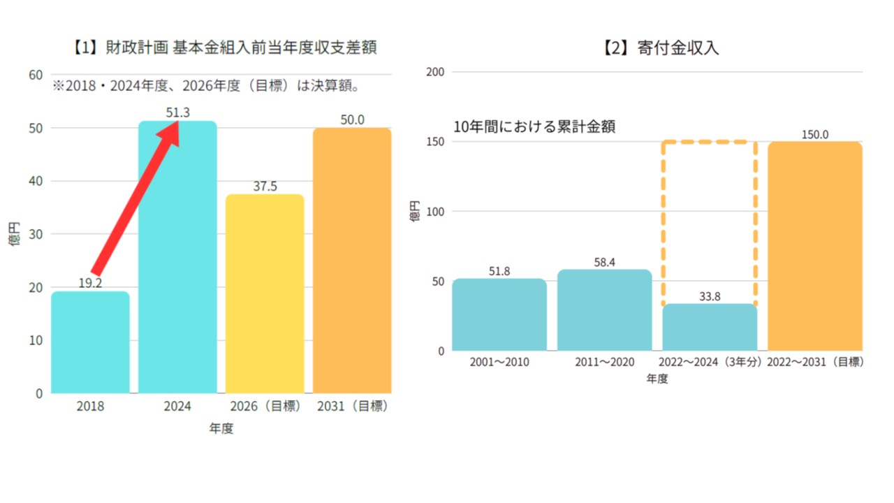 ※2024年度末時点の実績値と、中期計画5カ年の終了年度である2026年度及び長期ビジョンの最終年度の2031年度の目標値を比較しています。