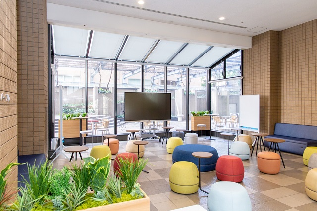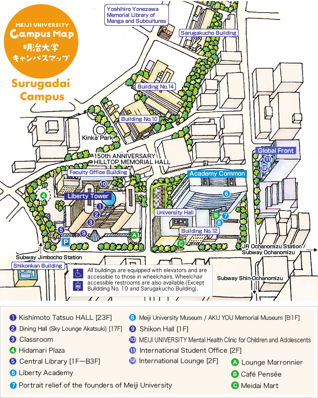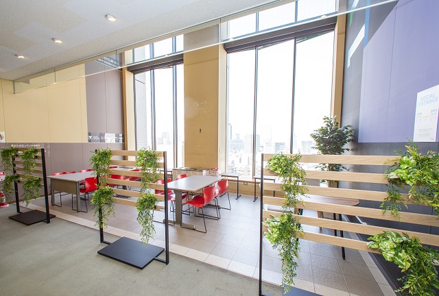 Facing Meidai-dori, the lounge is the perfect place for group studies and also as a meeting place.