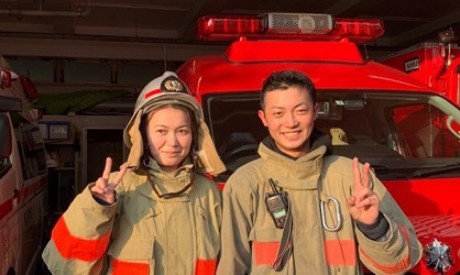 A scene at the field trip to the TOKYO FIRE DEPARTMENT