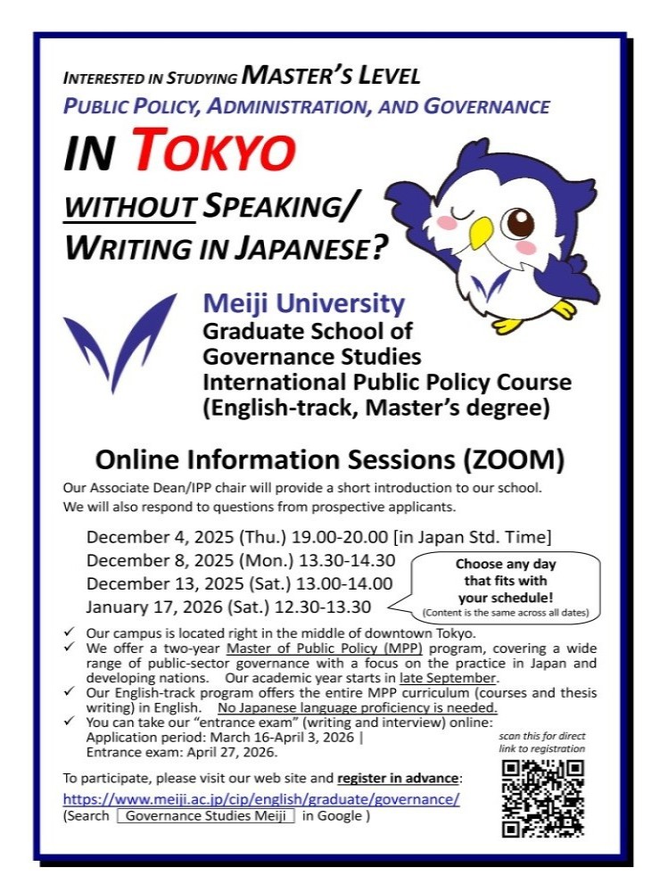 An online information session will be held via Zoom as follows. (Japan Std Time)