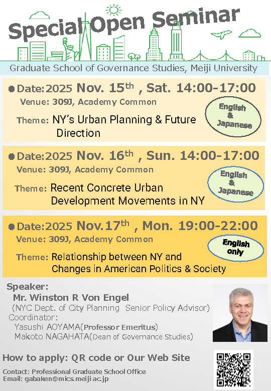 Graduate School of Governance Studies holds an open seminar welcoming Mr. Winston R Von Engel (NYC Dept. of City Planning Senior Policy Advisor).