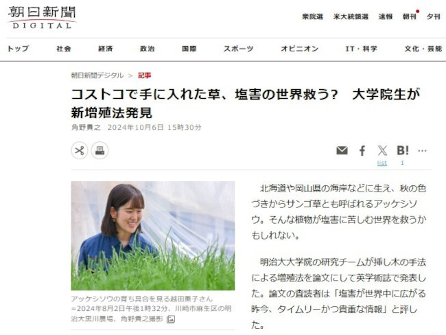 Kurokawa Field Science Center: KOSHIDA Kaoruko and other members’ paper on the method of propagating Salicornia europaea cuttings was published in a British horticultural journal