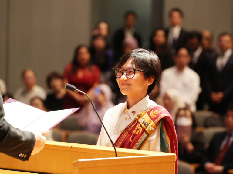 REYES Patricia Blanco (Graduate School of Global Governance) receiving graduation certificate on behalf of the graduate students