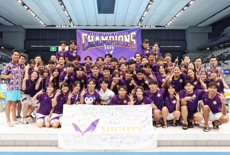 The Swimming Club (competitive swimming division) participated in the Intercollegiate Swimming Championships 2025 held at Tokyo Aquatics Center (Koto City, Tokyo) from September 4 to 7, 2025. The men’s team won the overall victory, achieving three consecutive championships. The women’s team finished fifth overall and will be seeded in the next tournament.