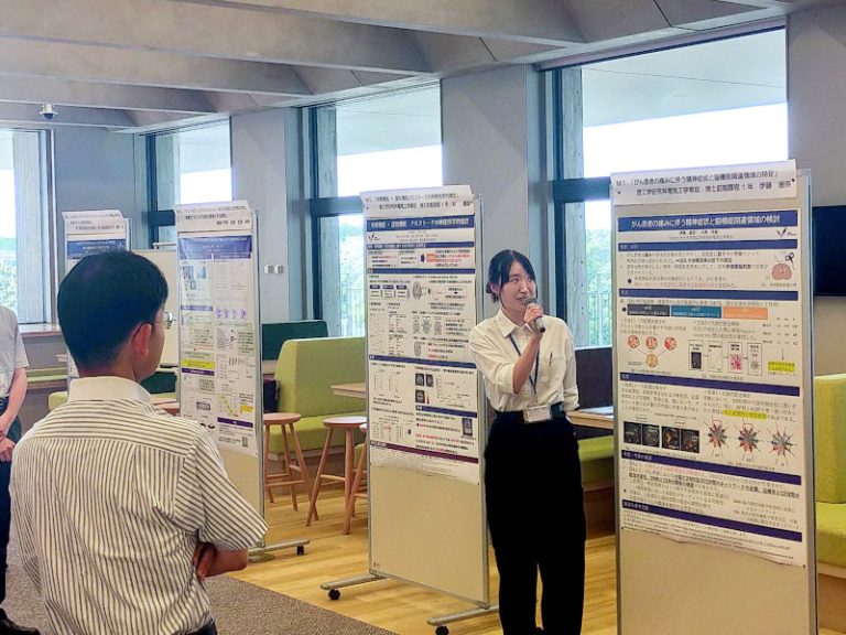 In the second session, a poster session of both universities was held, which also served as a research exchange meeting. Researchers from St. Marianna University School of Medicine introduced the needs and research cases of a wide range of medical fields, including gastroenterology, cardiology and orthopedic surgery. From Meiji University, researchers related to the needs presented in advance from St. Marianna University School of Medicine introduced research cases from the perspectives of engineering, chemistry, and machine learning, and there was a lively question-and-answer session among researchers.
