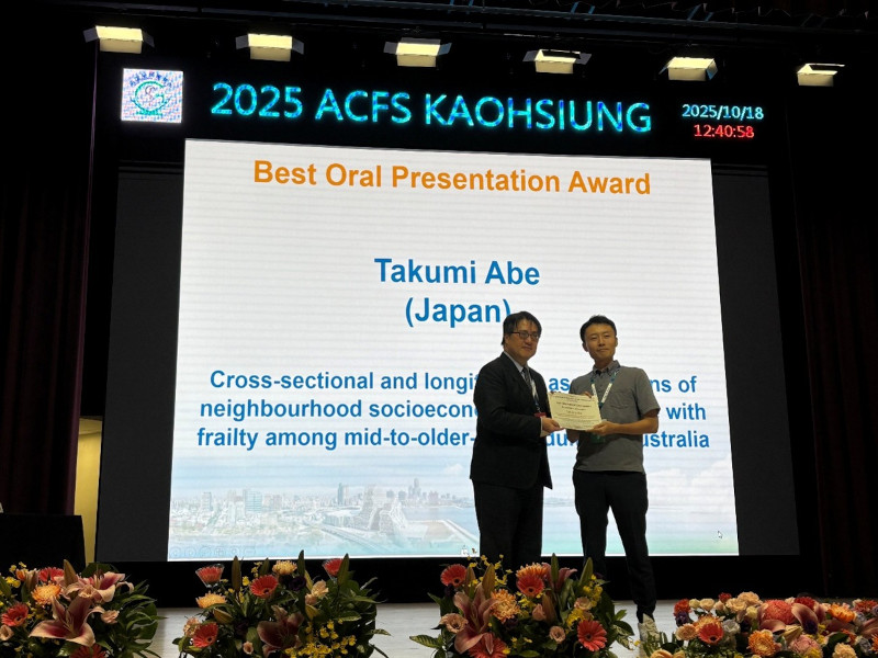 Associate Professor ABE Takumi received the Best Oral Presentation Award at the 11th Asian Conference for Frailty and Sarcopenia, held in Kaohsiung, Taiwan, on October 17–18, 2025.
