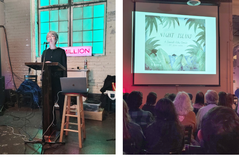 At the Short Run Showcase pre-event held two days earlier, she gave a reading of her new work while projecting images on a screen.