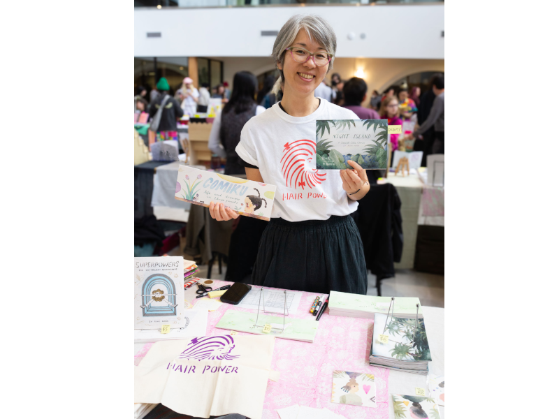 Associate Professor Rumi Hara of Comic Arts in the Places, Arts, and Consciousness program at the School of Science and Technology, Meiji University, presented three short works, including her new piece “Night Island,” and created one of the six official event banner illustrations at the comic festival Short Run, held in Seattle on November 1.