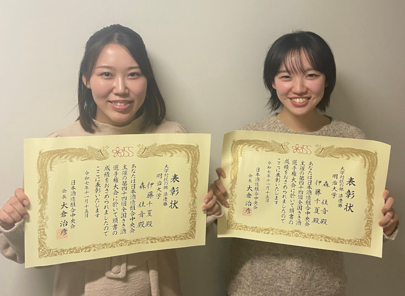 2025 Kiki-Sake (Tasting) Championship was held at Otemachi Place, where ITO Chinatsu and MORI Kanoto, first-year master’s students from the Laboratory of Microbial Ecology (Professor Harumi Nakashima), achieved second place in the University Division, on Saturday, November 15, 2025.