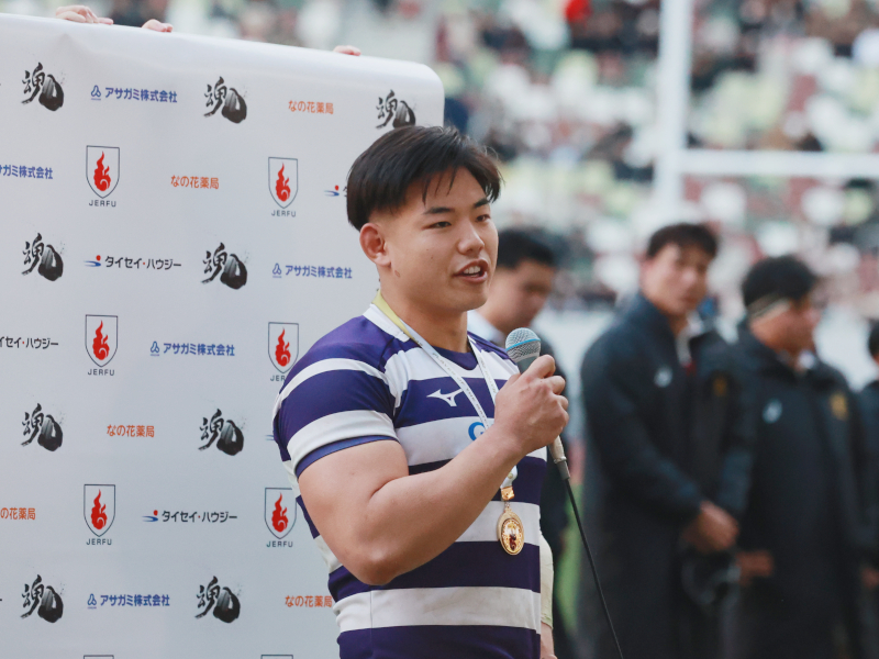 We are grateful to have been able to play our match at the magnificent stage of the National Stadium in front of so many spectators. Regarding the match itself, it was truly a game characteristic of Waseda University, a clash of strength against strength, and so we would also like to express our gratitude to our opponents, Waseda University. For Meiji University, this match was played with the tremendous motivation of knowing that winning would mean our first championship victory in five years. While we couldn’t apply as much pressure in the scrum as we had hoped, I believe our victory stemmed from consistently executing the fundamentals throughout the entire 80 minutes, such as lineout-to-maul play, the forward pack’s determination, and the backs’ committed physical defense. Winning the tournament isn’t the end goal, so while we’ll enjoy today, starting tomorrow we’ll shift our focus and work hard toward the University Championship.