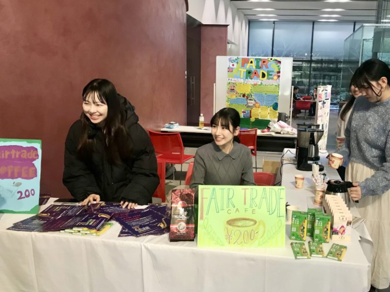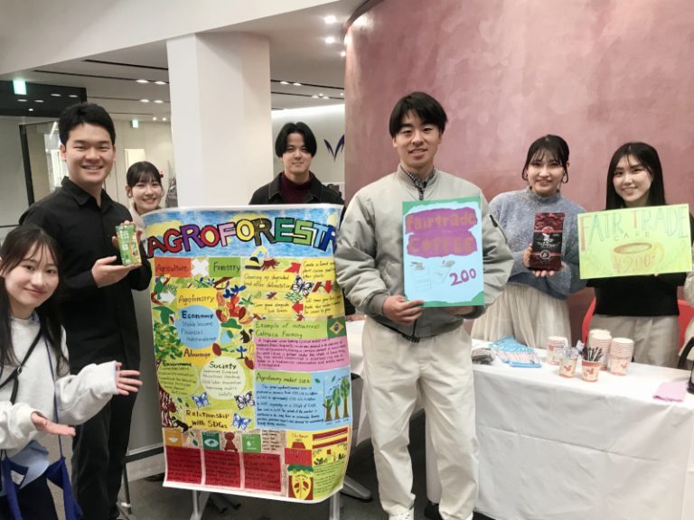 In the lobby, the team sold fair‑trade coffee from Chiapas, Mexico and presented posters explaining the significance of fair trade. In addition, Meiji Co., Ltd. provided chocolate made with Peruvian cacao and agroforestry chocolate developed under the concept of Farming that Creates Forests. These were distributed to all participants, sending a message about the importance of environmental and forest conservation through food.