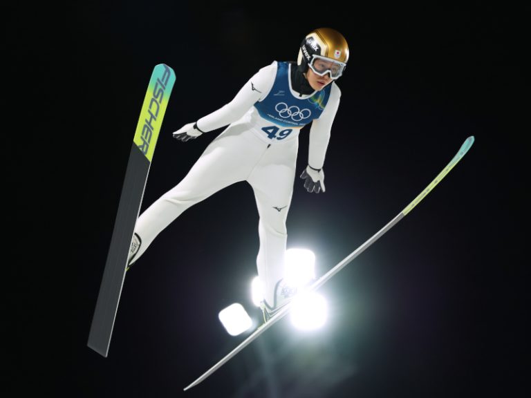 Nozomi Maruyama in midair during her jump (Photo by Yohei Osada/AFLO SPORT)