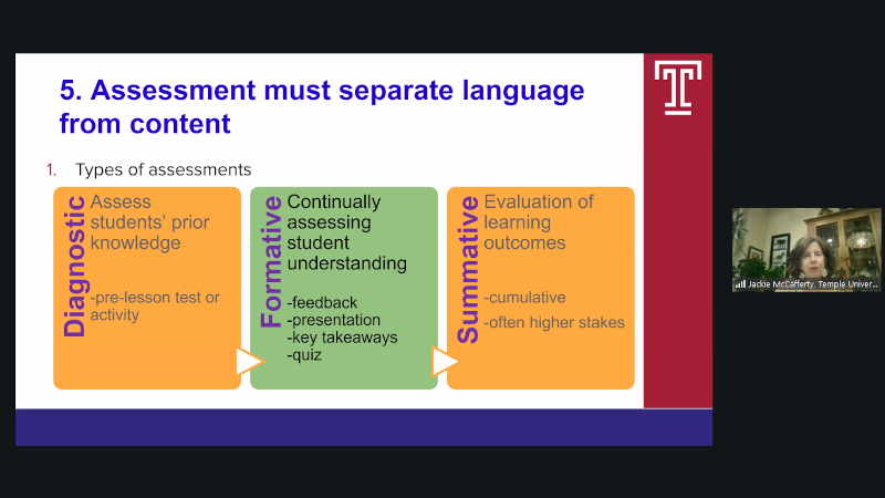 As part of efforts to promote internationalization of Meiji University, the Headquarters of International Collaboration has implemented a training program for faculty to give lectures on specialized subjects in English. The 4th training program was held on January 24 under the theme “Pedagogical Approaches to Teaching in English: Educational Theory and Practice.” Professor Jacqueline McCafferty of Temple University delivered the lecture in an online format.