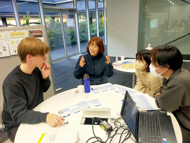 On the following week, December 3, Finnish Cafe was held. Three persons, Emi and Tatu, both exchange students from Finland, and Samuel, a last year’s exchange student who happened to be in Japan on vacation, acted as facilitators.