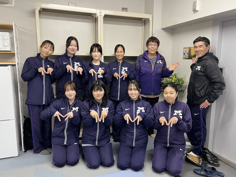 Ms. HATANAKA Kimiyo (second from the right in the back row), Mr. SONOHARA Takehiro, Head Coach of the Athletic Club (right in the back row), together with the female athletes and team manager