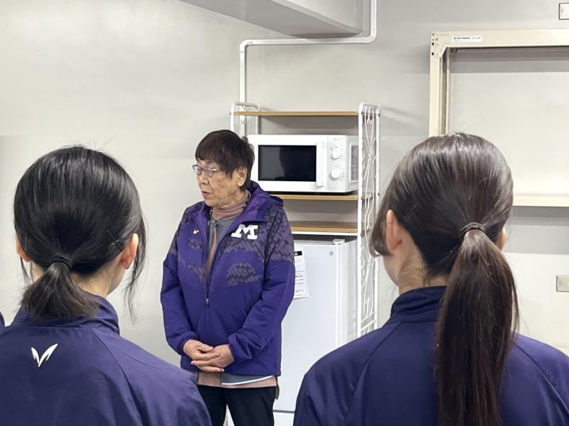 Ms. Hatanaka commented, “During my student days, I practiced on the tennis courts at Hachiman-yama, but at that time, the environment for female athletes was not well developed. I hope that this newly established room will contribute to the further advancement of women’s sports and to your continued success. I also encourage you to devote yourselves not only to sports but to your academic studies as well.”