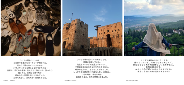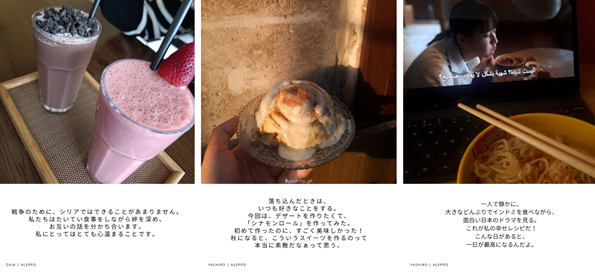 Images of enjoying chats with friends at cafes, celebrating birthdays together, and immersing themselves in personal hobbies. These scenes were indistinguishable from those of Japanese university students. The photos breathed life into the real lives of Syrian youth—lives unseen in news articles alone.