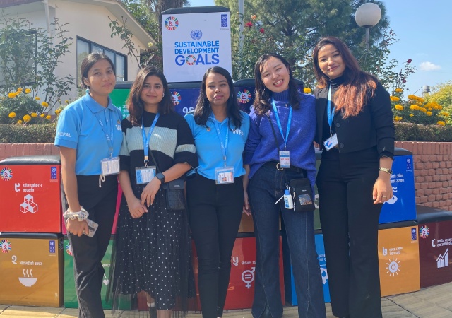 一方の阿部さんは、「留学ではない形で海外での学びを体験できるプログラム」を探していた際に、たまたまこのプログラムに出逢ったそうです。「援助の現場を自分目で見てみたい」という想いで、本プログラムに参加したという阿部さん。災害•紛争地域への食糧支援や途上国の栄養改善を行っている国連世界食糧計画(WFP)のネパール事務所において、現地で支援を必要としている方々への食糧支援活動に取り組みました。