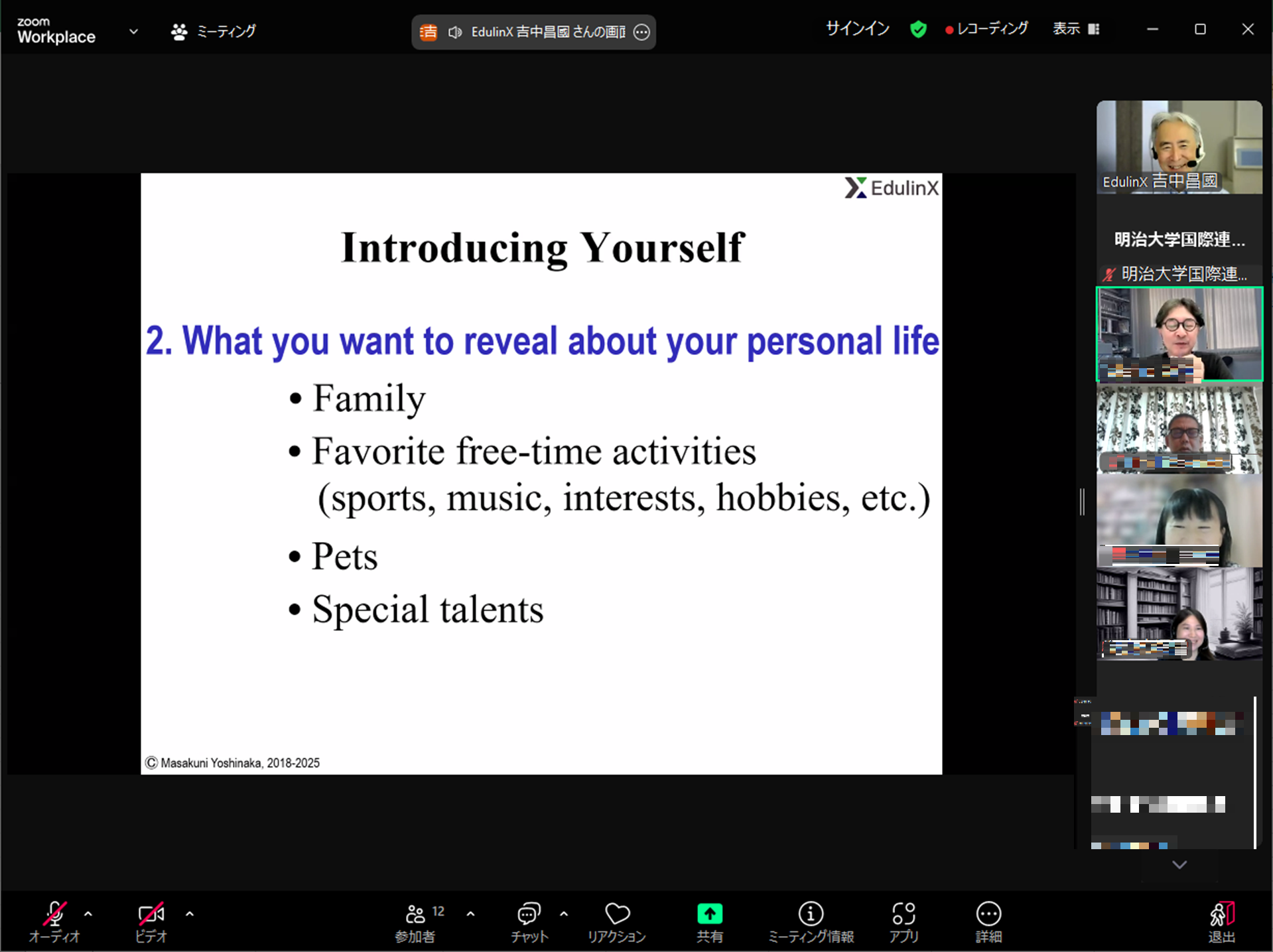 国際連携本部では、英語による授業を行うためのFD研修を実施している。今年度第2回の研修は2025年7月30日、株式会社EdulinXの吉中昌國氏を講師に迎え、オンライン形式で開催した。