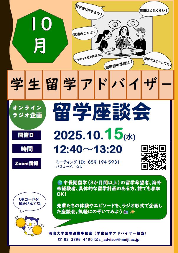 - 2023年10月【和泉キャンパス】学生留学アドバイザー座談会(4回開催!)
