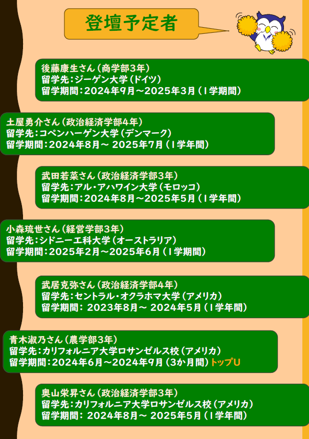 - 2023年6月28日【中野キャンパス】学生留学アドバイザー座談会「中野キャンパス明大生の留学体験談」