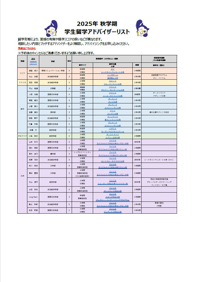 個別アドバイジング:学生留学アドバイザーに相談できます!(2025年度予約受付中)