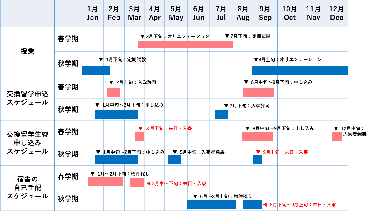 ※2026年度春学期に来日する交換留学生について、来日に関するご案内(オリエンテーションスケジュール等)は1月の下旬ごろに入学許可証と併せて送付する予定です。