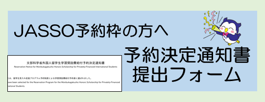 New students enrolling in April 2026 who have received a reservation notice for Monbukagakusho Honors Scholarship (JASSO Scholarship) should submit the data of your reservation notice using the online form.