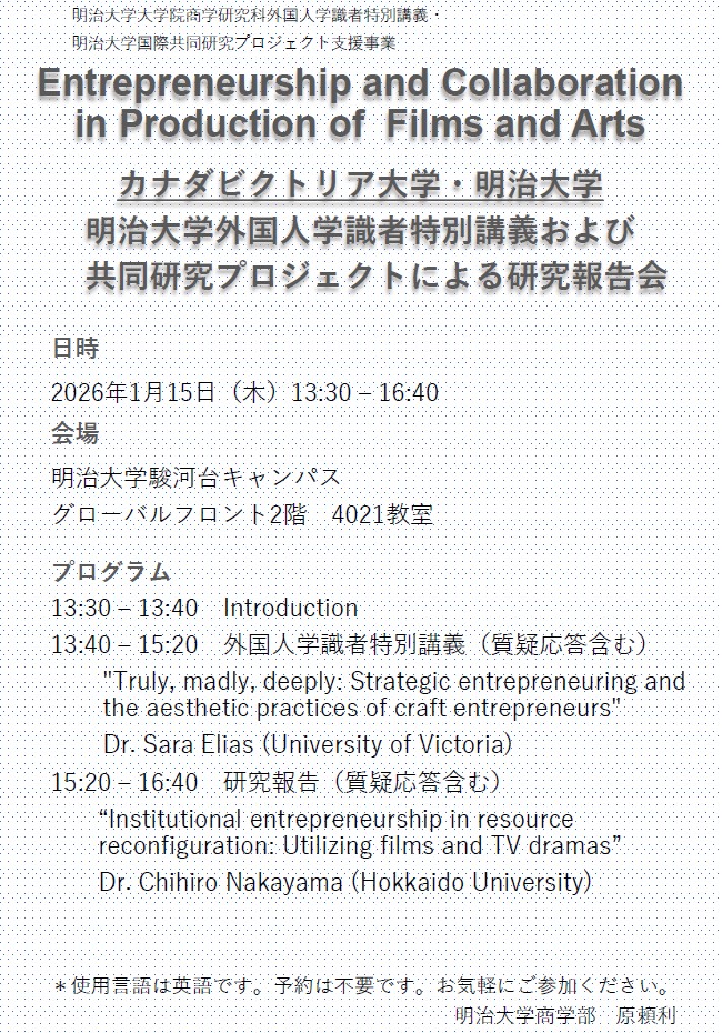 本講座は、明治大学国際共同研究プロジェクト支援事業と併せて実施されます。