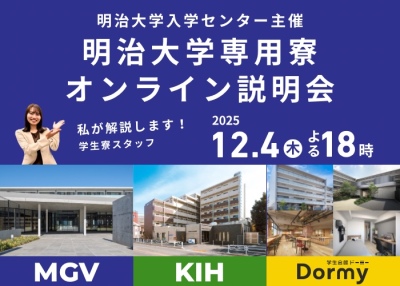 明治大学には、明大生だけが入居できる2つの専用寮と、提携している多数の推薦寮があります。