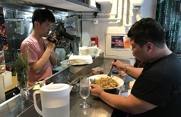授業時間中には,カメラなどの機材の使用方法や撮影・取材の段取りから学びます。その後,チームごとに設定したテーマに沿って,授業時間外にも主体的に取材や撮影を進めます。学内外の施設や店舗への取材交渉もすべて学生たちが行いました。そうして収集した映像や情報をもとに,ひとつの番組を作り上げます。