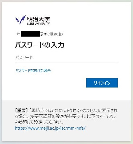 "教職員番号"@meiji.ac.jp または "学生番号"@meiji.ac.jp