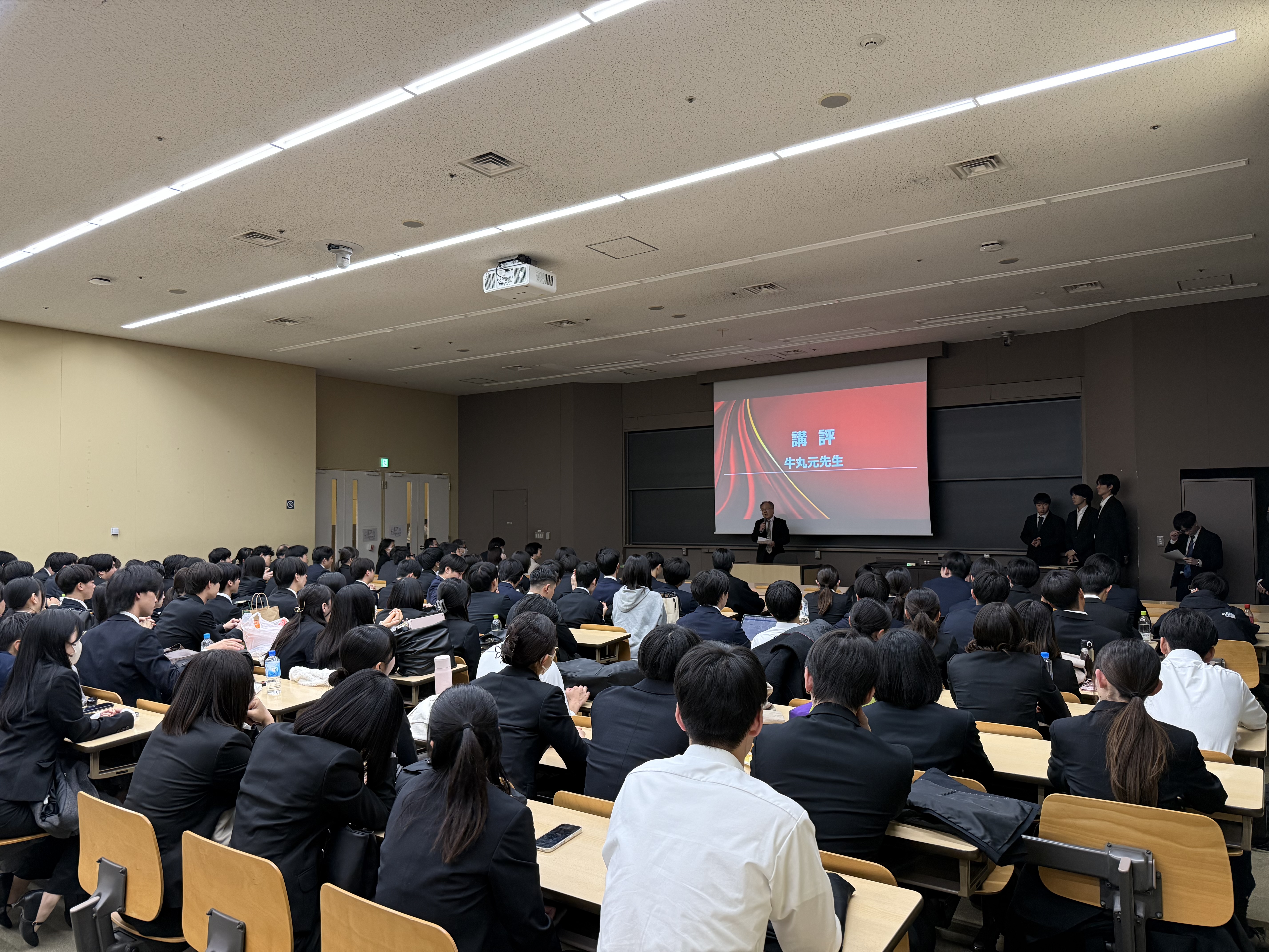 「本大会は、長い歴史の中で数多くの研究成果と学びを生み出してきた、経営学部を代表するプレゼンテーション大会です。今年もまた、出場した学生の皆さんが、それぞれに独自の視点から研究テーマを深く掘り下げ、その努力の結晶を堂々と発表する姿に、強い感動を覚えました。