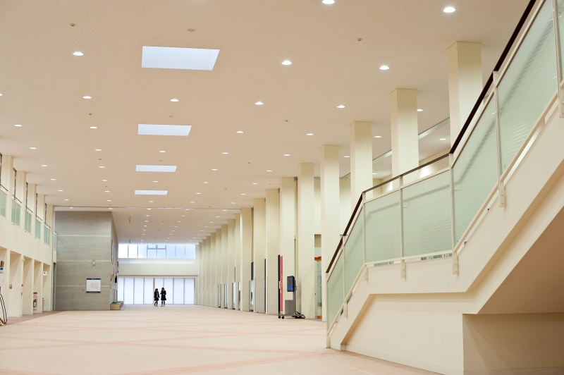 幅8~11.5m、長さ90m、天井高さ6.35mの1・2階吹き抜けとなっており、明るく開放的な空間です。