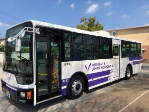 スクールバスが生徒公募デザインでリニューアル | 明治大学 (meiji.ac.jp)