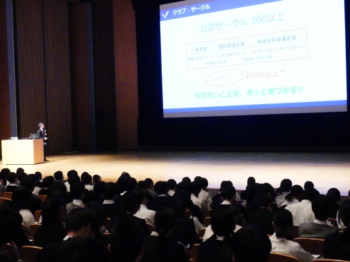 10月24日に訪れた生田キャンパスでは、今年度竣工したセンターフォレスト内の教室に集合し、理工学部・農学部の職員の方々から、学部の特色や主要施設について説明を受けました。その後、生徒はあらかじめ決められたルートに沿って研究室を見学し、大規模な実験施設など生田キャンパスならではの多様な学びの場を自分の目で確かめました。
