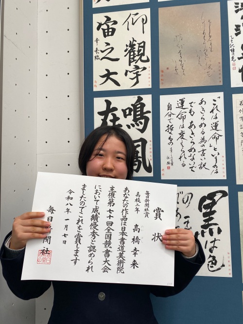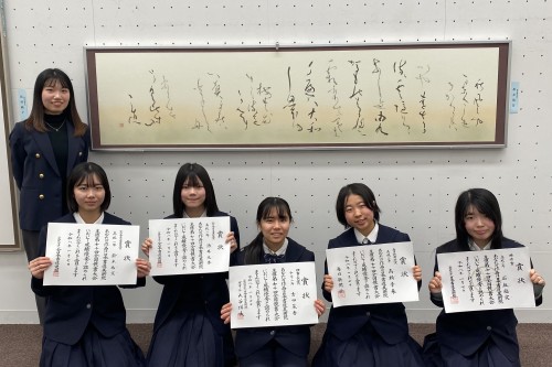 1月7日、日本書道美術院が主催する第70回全国競書大会および第80回日本書道美術院教育部展の表彰式が東京都美術館で行われ、上位の個人賞を受賞した本校生徒5名が表彰を受けました。