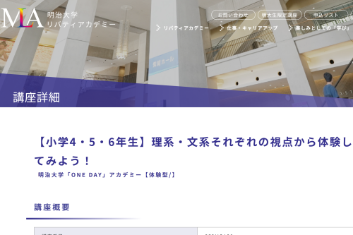 - 【小学4・5・6年生】理系・文系それぞれの視点から体験してみよう! 明治大学「ONE DAY」アカデミー【体験型/】