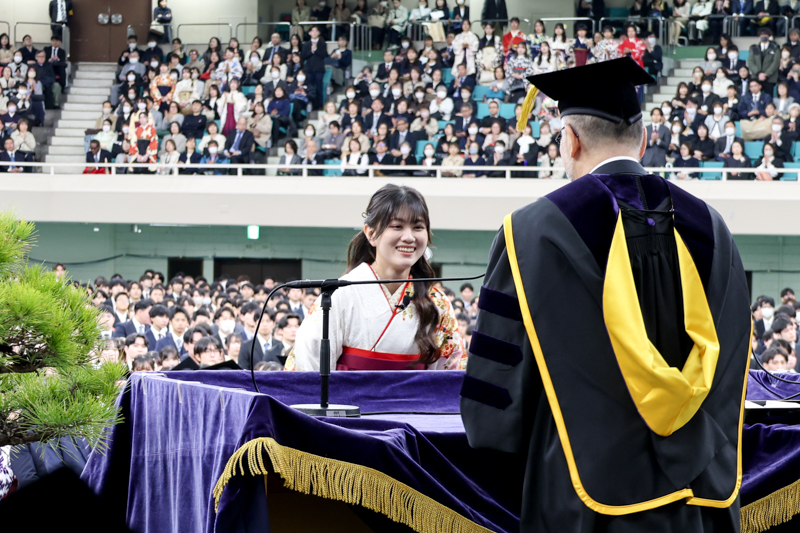 明治大学卒業式で本校卒業生の武田さんが答辞