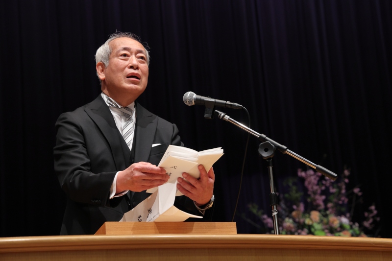 式辞を述べる柳谷理事長